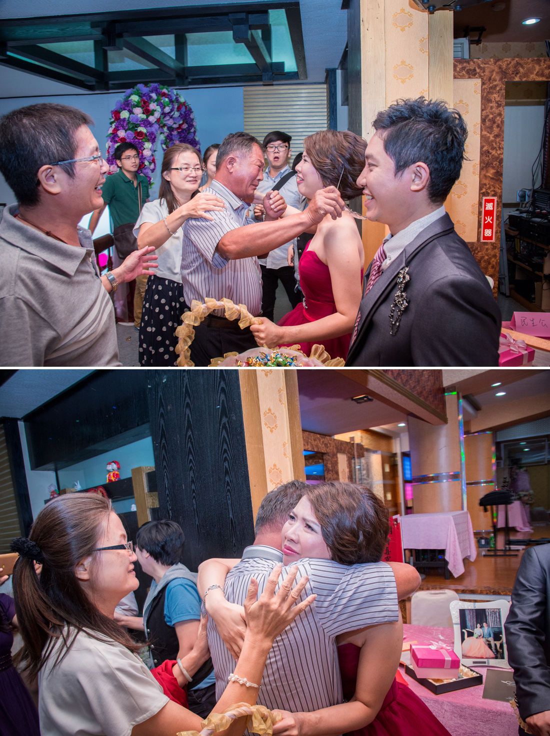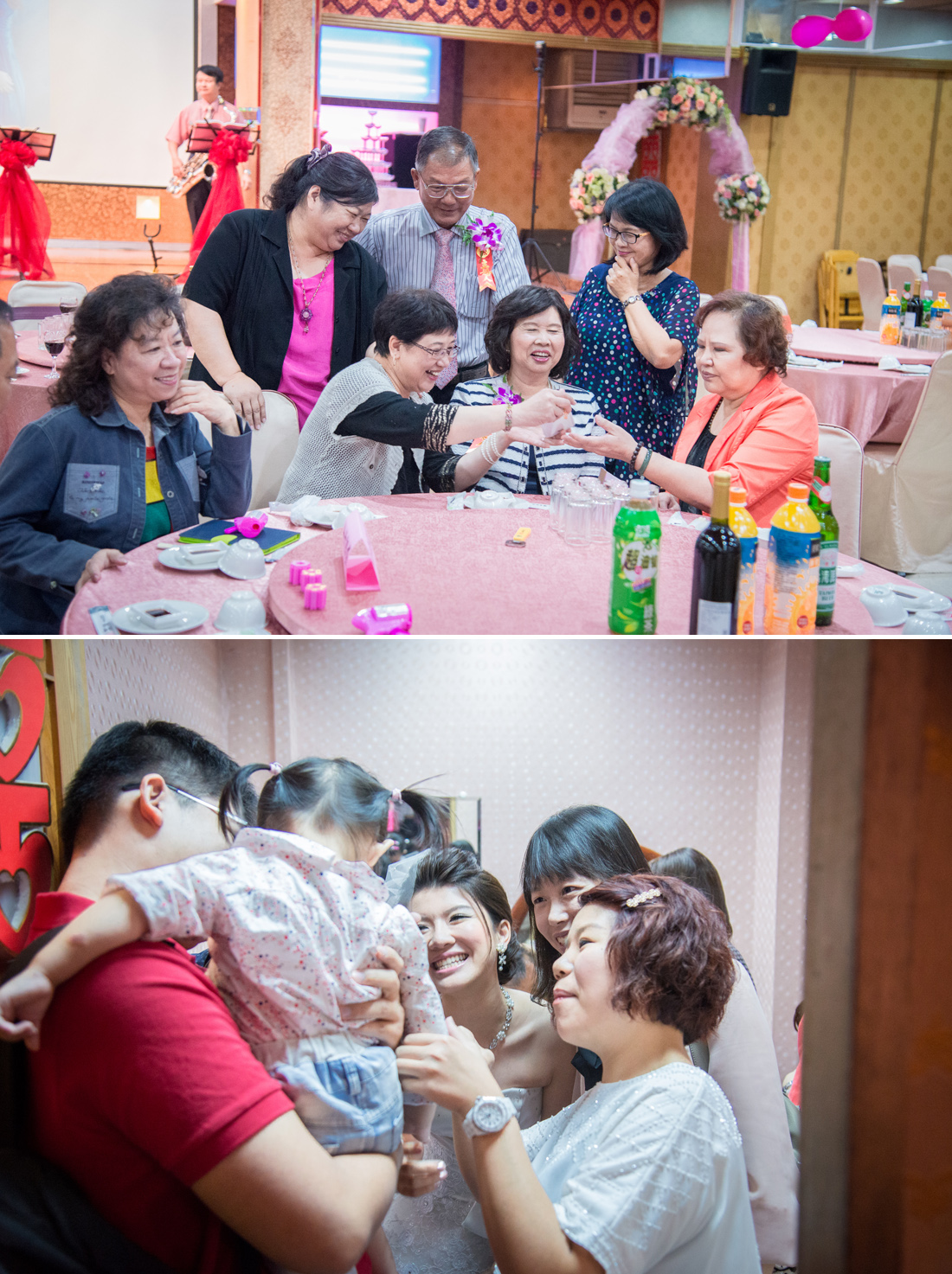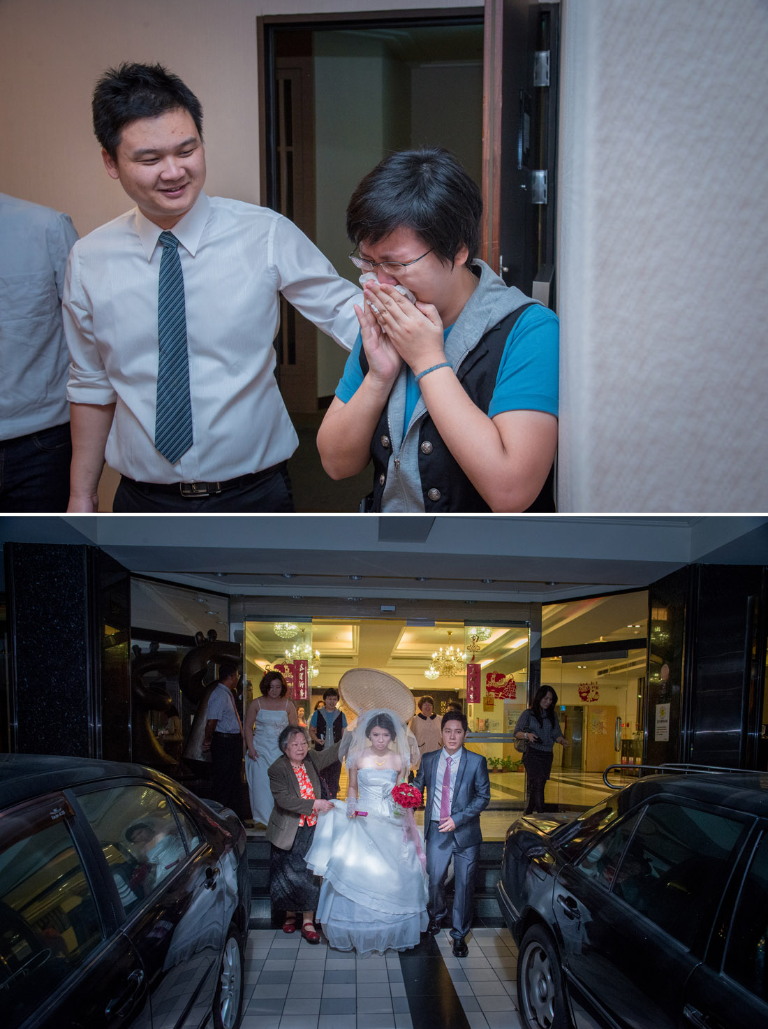 說真的像這樣新娘需要早上2點就開始化妝,真的相當的辛苦, 這個時間點有點尷尬 ,新娘子也說都沒睡到. 我猜如果要求新娘再從來一次應該打死都不願意吧. XD . 這次新秘Sunna也是相當專業乾淨利落,聽新人說原本是訂不到新秘Sunna,是因為剛好有人退訂插進來. 新娘老家是住在台東,他們親友前一天就住在嘉義永悅商務大飯店, 小呂原本以為早上儀式太早不會很多人,只有幾個比較重要人物, 到現場看, 真是哇! 很多新娘親友都很期待這次的婚禮, 我們還因為有點太吵,造成房客出來抗議.新郎官可能看到那麼多人,有點緊張忘記要做甚麼! 在午宴時 新娘的弟弟還特別提醒小呂,能幫他們父母親友多拍一些, 因為很難的都能聚在一起,平時大家都住在不同地方,難的見面. 我也發現他們父母這團聊的特別開心, 捕捉到每個人獨照的畫面, 婚禮記錄除了拍攝新人為主,其他的親友賓客也是重要環節之一. 其實如果新人能告訴小呂重點,或特別需要注意的,像這樣也能讓我拍到更多你們想要的照片, 也很感謝新娘的弟弟特別提醒我, 婚禮當天新人是整場的焦點,有時真的忙不過來,忘東忘西 ,能有個處理雜事的幫手是相當的方便的. 最後感謝當天提供車子的美麗小姐!