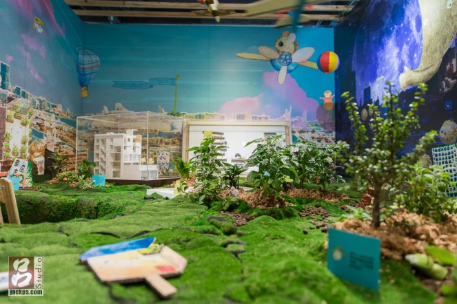 整場內這部分是拍照最好看的地方,設計師他們設計一個小小世界,參觀者可帶得可愛動物造型的工地帽進到這個夢想高雄的空間內拍照。