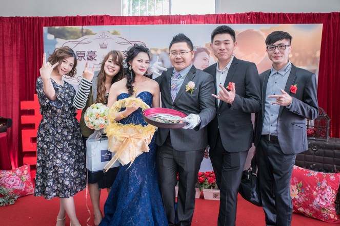 新郎原豪他們的喜宴算是補請,其實2個月前他們的小孩才剛出生,這次前來參加宴客親友都是第一次見到小孩,新郎父親特別抱的孫子進來給各桌親賓客瞧瞧,新娘的父母也是第一次抱到金孫,當他們看到小孩笑得超開心,那種表情是相當真誠,我個人還滿高興參與他們婚禮能捕抓到這部分,這是完全意料之外的事。