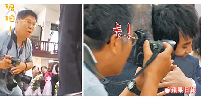 動態婚禮攝影攝他們也許沒辦法像平面婚攝,拍幾張就換地方躲遠遠,他們需要持續拍攝,移動也比較慢,有時特寫需要特別近拍,很難不把他拍進去。