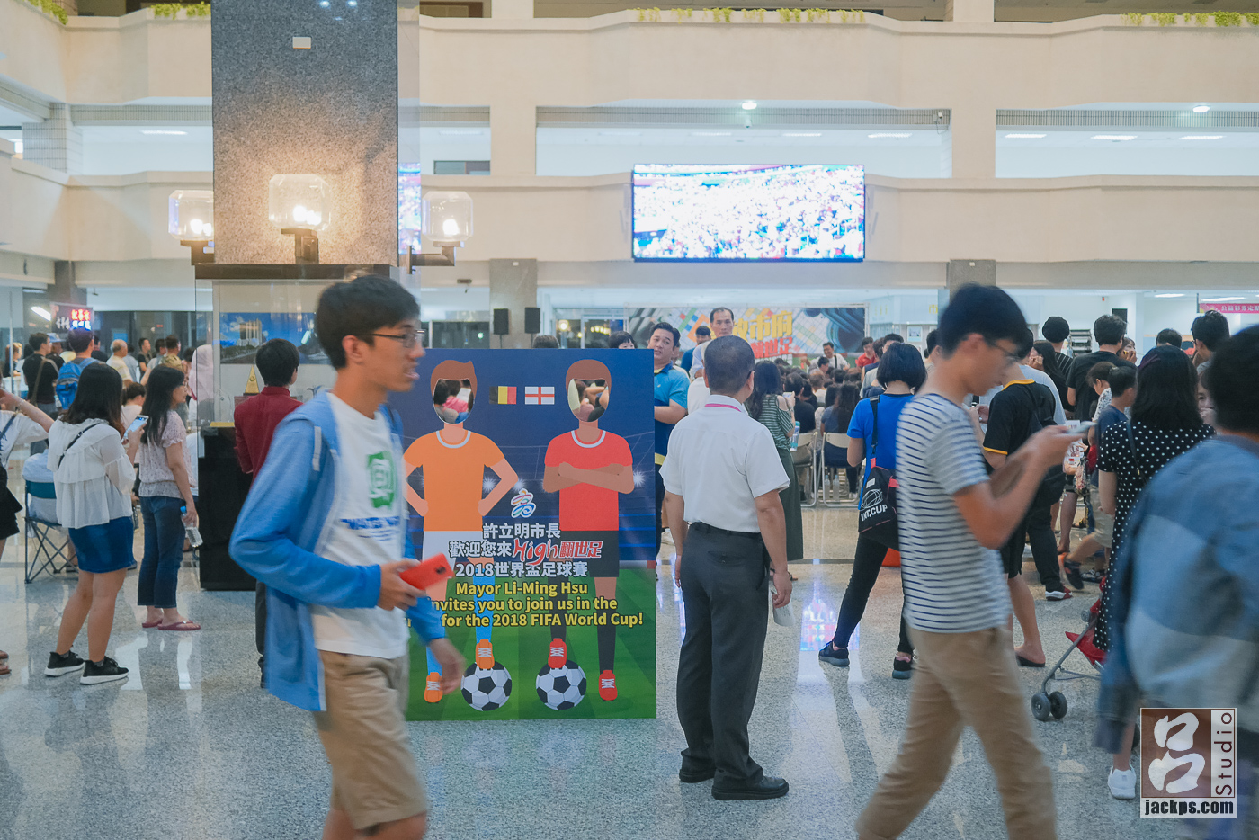 昨天我在回家路程,不小心看到運彩的LED招牌正在播放世足,讓我想起高雄版好像有人貼 高雄四維行政中心和鳳山體育場直播季軍戰和冠軍戰 的新聞,我當下就google下 四維行政中心,發現離我現在位子不會很遠,就跑過去看看,原本想說時間哪晚,現場參與的民眾可能不多,到現在才發現熱鬧的,應該有超過400人,剛好手邊有帶台小相機,就紀錄下現場。