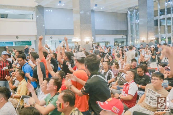 其實在家或酒吧幾個人觀看,跟幾百個人的氛圍完全不同,每當比賽球員把球運到另一隊守門員前,現場大夥人就開始歡呼,加上現在有不少足球迷都超激動的。氣氛是會傳染的。