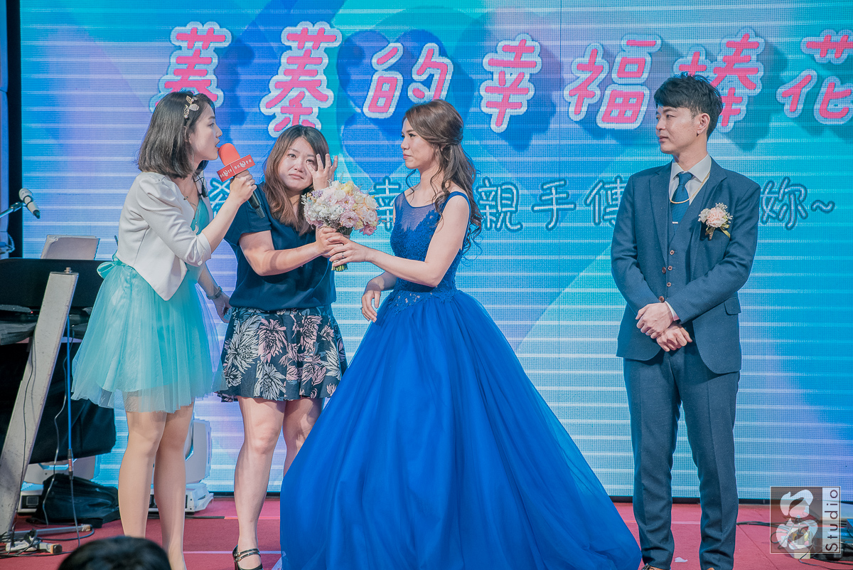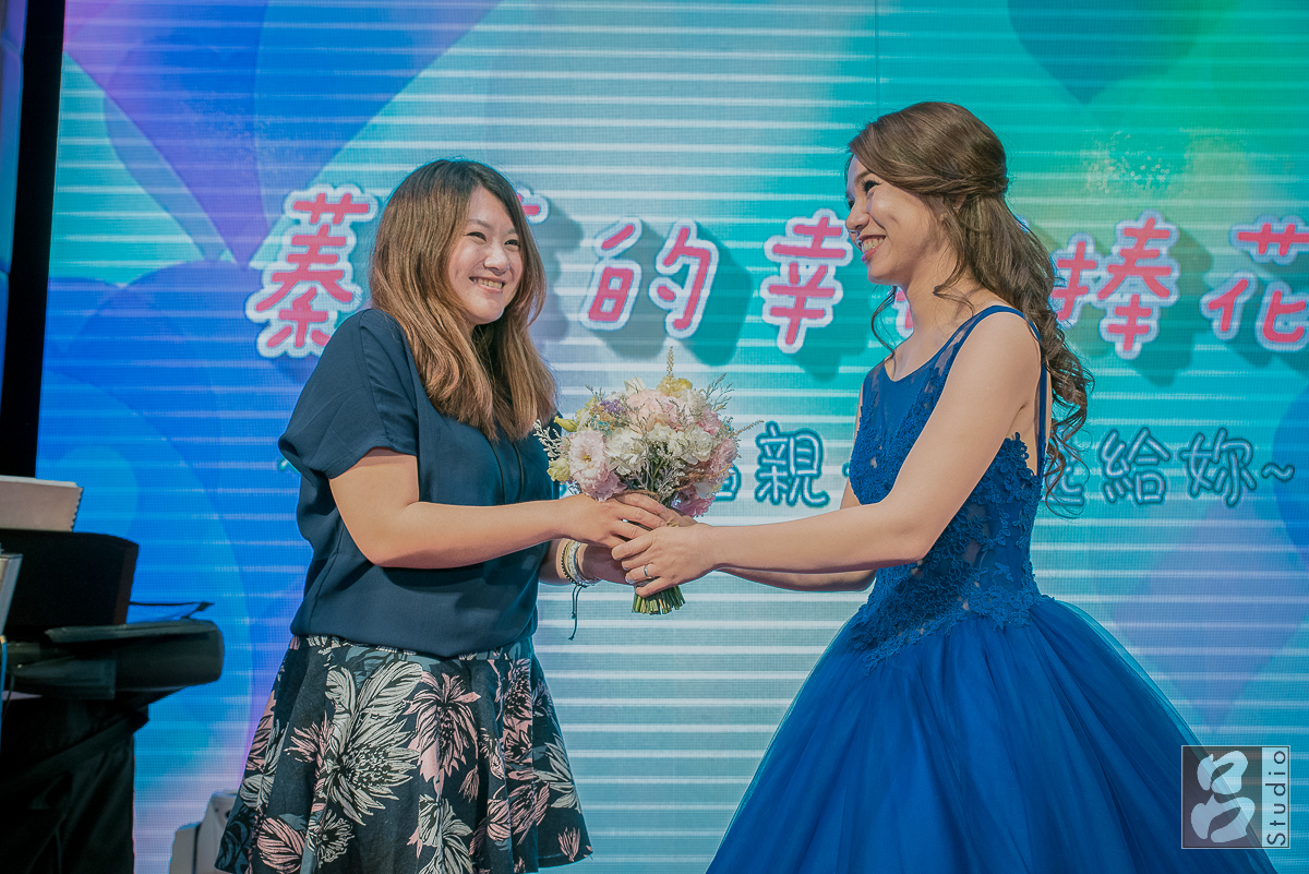 有時很難用文字描述一場婚禮過程,雖然都過一年後但是看到當天照片,當時一些畫面回憶就在浮現出在我腦海內,主婚人再跟小朋友玩耍、收到捧花閨蜜忍不住在台上哭起來、新娘抱住奶奶開心畫面、男女主婚人一起高歌畫面、新娘離開家門媽媽在後面掉淚。