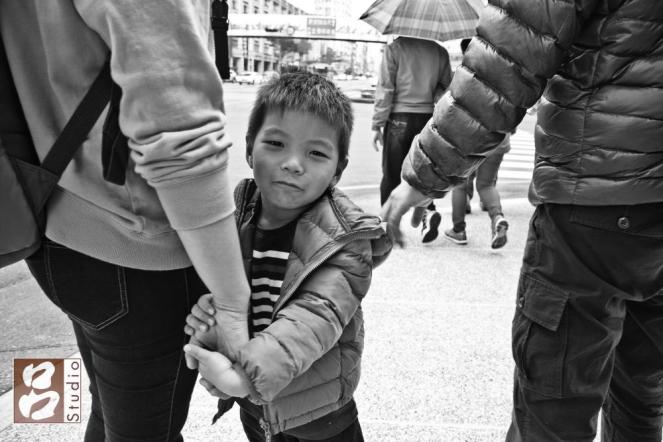 第一張照片背後故事相當有趣,故事可說到3年前時的拍攝,當我們在公園拍攝時,原本他走到前面,剛好我們需要經過鴿子群,他看到前面有鴿子不敢走過,就向爸爸求助,會有這樣舉動,因為之前在餵鴨子時走太靠近,鴨子群一直靠過來,想搶他的手上的食物咬他,讓他感覺到害怕,現在每當遇到鳥類聚在一起塊時就會想到當時。