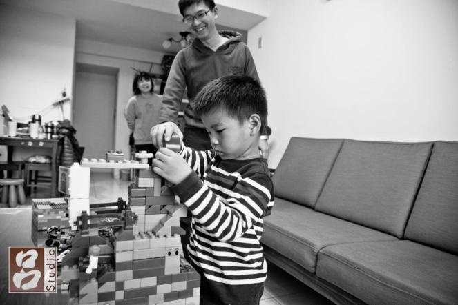 這些照片都是他們家庭平日的生活片段,並沒有華麗的場景或是特別到攝影工作室拍攝,我以最自然最貼近他們的生活去紀錄我看到畫面,我拍攝注重在他們親子中互動真實情感,以他近期接觸人地時事物做出發,在這些偶發事件中在尋找我感興趣又趣的畫面,這次後製調色也是故意選擇黑白調性。