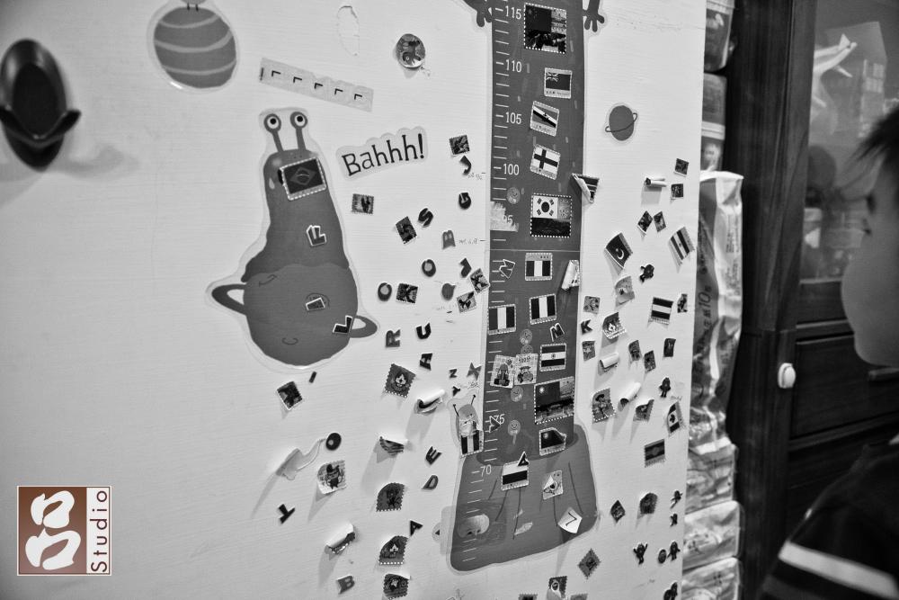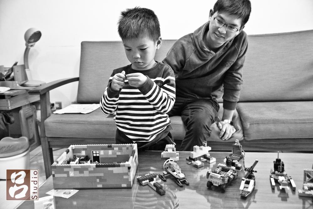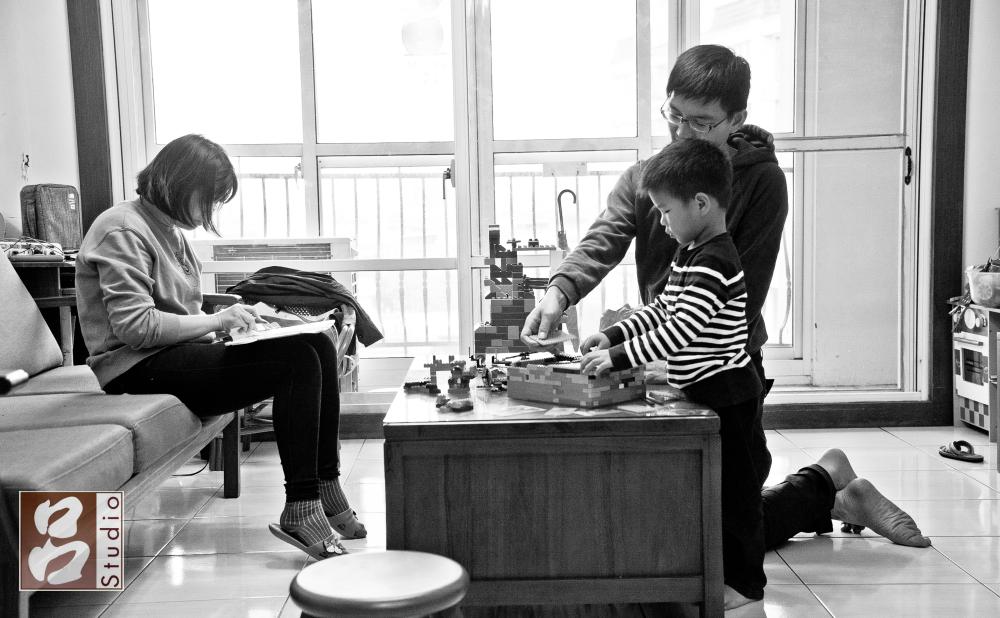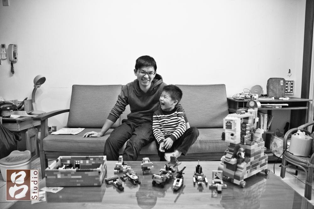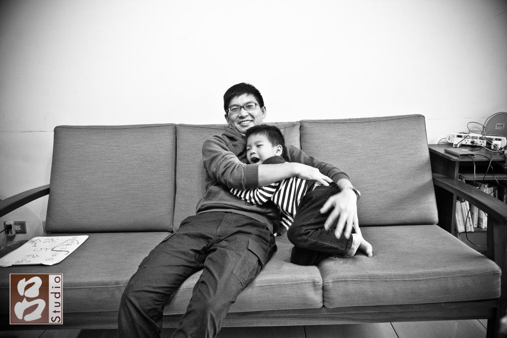 這些照片都是他們家庭平日的生活片段,並沒有華麗的場景或是特別到攝影工作室拍攝,我以最自然最貼近他們的生活去紀錄我看到畫面,我拍攝注重在他們親子中互動真實情感,以他近期接觸人地時事物做出發,在這些偶發事件中在尋找我感興趣又趣的畫面,這次後製調色也是故意選擇黑白調性。