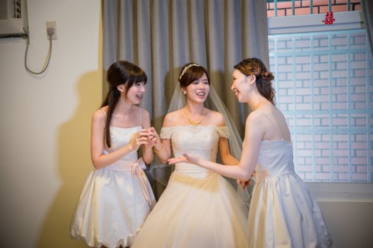 當天忙起來通常最容易忽視掉就是身邊的家人兄弟姊妹,幫你處理大小時,忙東忙西,在喜宴招待親友,有時根本沒時間跟新人拍張照,當你想起來可都快結束已經是最後一套送客的晚禮服。,所以這邊建議新娘白紗可在儀式前半小時完成,留點時間給婚攝拍攝你們全家照或姊妹照。