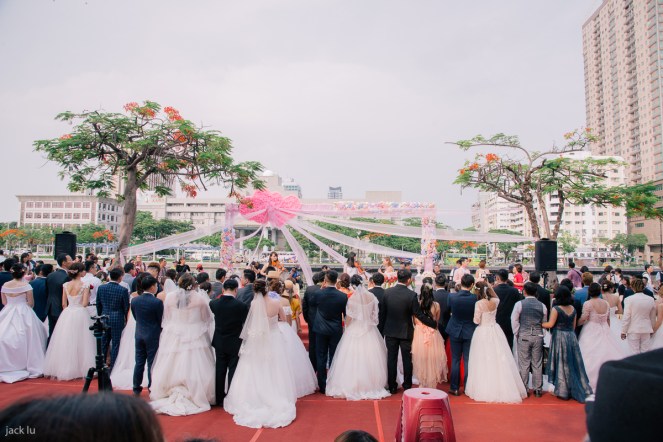 今年的集團婚禮是換新市長的第一屆,選在愛河親水徒步區舉辦,這幾年也有幾次選在戶外辦,大家最擔心問題就是天氣,怕太熱又怕下雨,今年的5/25算是不錯,剛好有風,太陽不大,但是我還是熱翻,我當天怕太累,晚上還有一場喜宴要拍攝,特別穿短褲短袖,主辦單位也怕天氣太熱,特別把時間延下午3點,造成有些新人晚上還有喜宴要跑,時間卡的很緊,我看一些新人時間上沒法配合,最後選擇放棄參加婚禮,感覺這次還滿多外縣特別過來新人,我也整理出當天新聞連接,有些新聞網頁過一段時間官方就會下架,如果想自已保存,最好自已抓存截圖,影片也一樣。