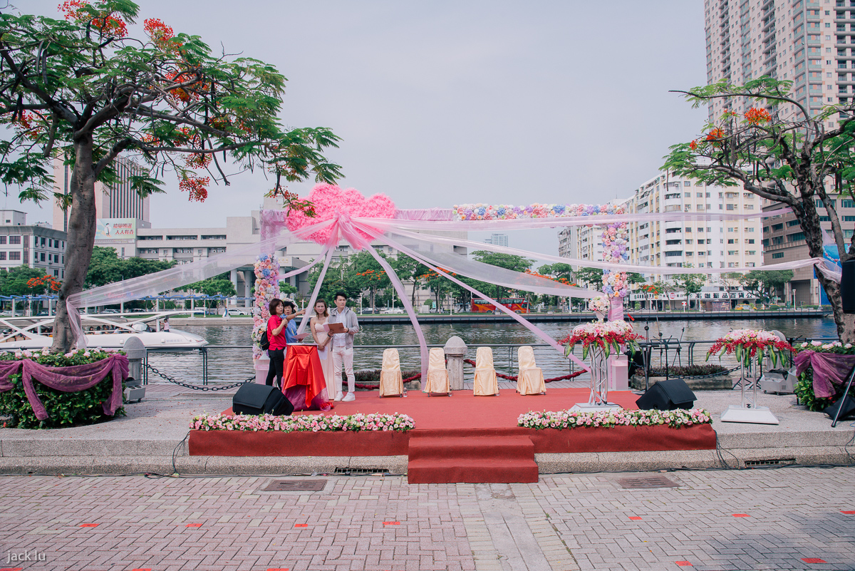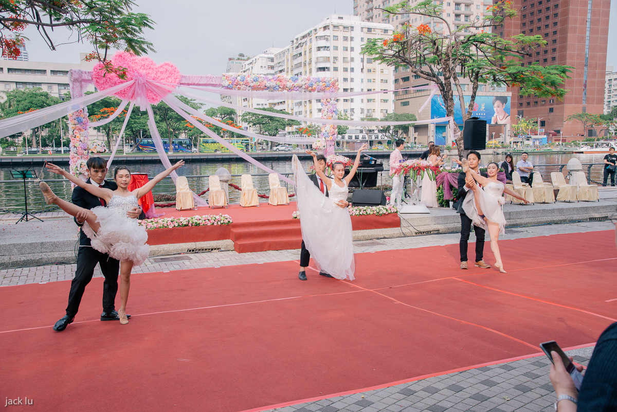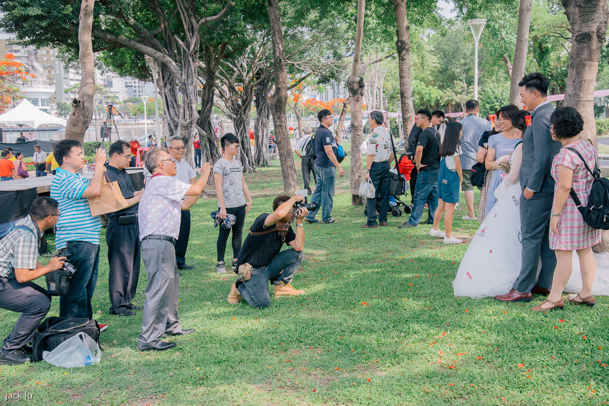 今年的集團婚禮是換新市長的第一屆,選在愛河親水徒步區舉辦,這幾年也有幾次選在戶外辦,大家最擔心問題就是天氣,怕太熱又怕下雨,今年的5/25算是不錯,剛好有風,太陽不大,但是我還是熱翻,我當天怕太累,晚上還有一場喜宴要拍攝,特別穿短褲短袖,主辦單位也怕天氣太熱,特別把時間延下午3點,造成有些新人晚上還有喜宴要跑,時間卡的很緊,我看一些新人時間上沒法配合,最後選擇放棄參加婚禮,感覺這次還滿多外縣特別過來新人,我也整理出當天新聞連接,有些新聞網頁過一段時間官方就會下架,如果想自已保存,最好自已抓存截圖,影片也一樣。