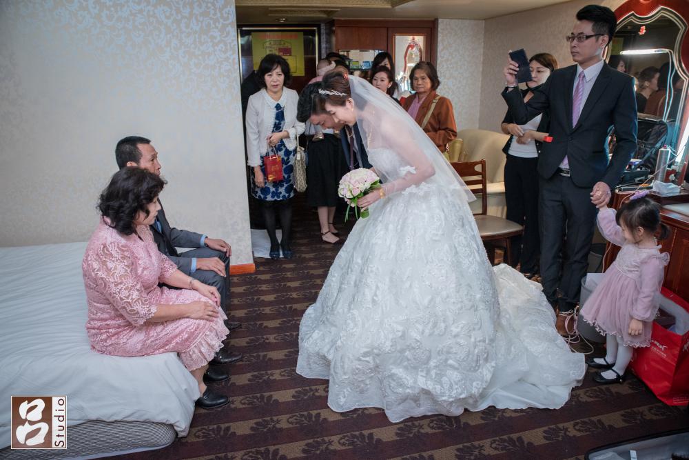 這場拜別橋段,當時跟新娘Mio溝通流程時,說其實父母不用拜別儀式,但是我還跟新娘說就算沒要拜別,但是至少也很做個動作講些話,有個感謝父母養育之恩,雖然最後並沒有說到什話,但是當母親抱住女兒,可看到新娘Mio相當不捨表情。
