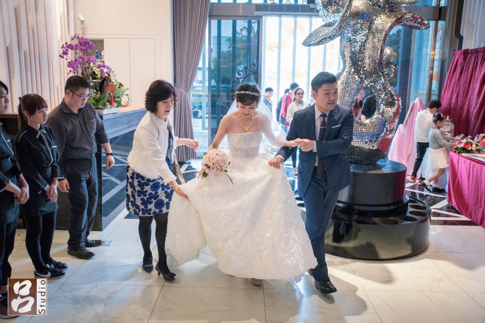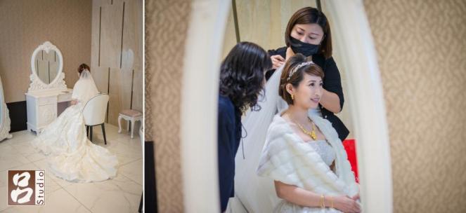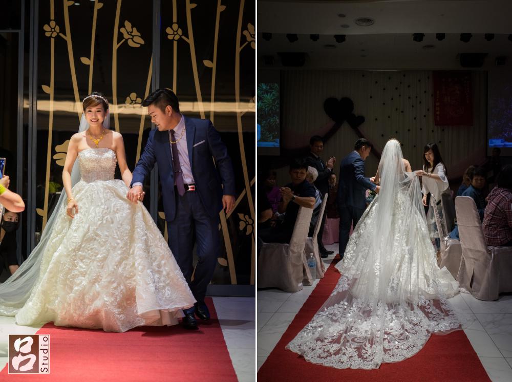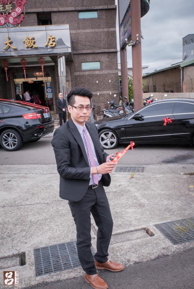 這次拍攝內容是結婚儀式和喜宴,早上新娘化妝地點是選在苗栗火車站旁的王府飯店,對非本地人相當的方便,很多人都選在飯店當新娘化妝和拜別儀式地點,可減少長途車程和時間,結束時新娘要上禮車時,也遇到2,3台其他新郎的禮車都擠在大門口內,還好我們家司機很機靈,沒跟其他禮車停在一起。
