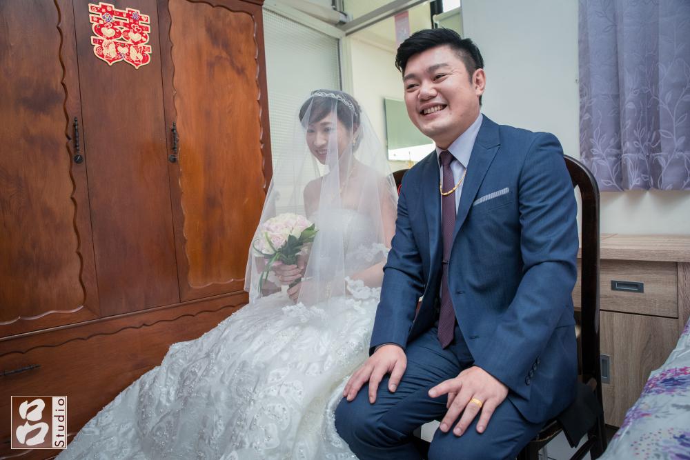 因為地點在火車旁,很多女方親友都陸續前來新娘房觀禮,男方是客家人在早上準備工作時,不時聽到客家話,男方家算是很愛拍照片,再牆上和櫃子內都看到他們去相館拍的全家福或個人照片,