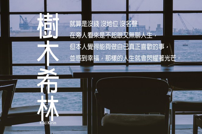 就算是沒錢 沒地位 沒名聲 在旁人看來是不起眼又無聊人生,但本人覺得能夠做自已真正喜歡的事, 並感到幸福,那樣的人生就會閃耀著光芒。