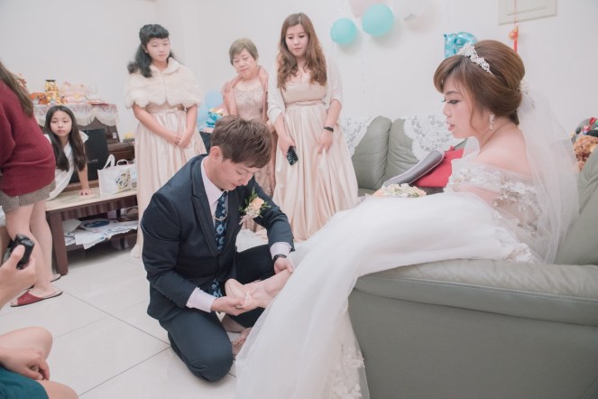 我們迎娶禮車一到男家住家,就看到超多親友團都在現在等在新人進房,男方親友非常多,在喜宴開始前我都忙得拿長鏡頭拍攝,在過於拍攝親友團,都有點忘記幫新娘多拍一些獨照和類婚紗。