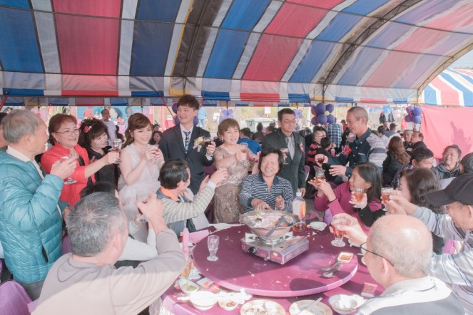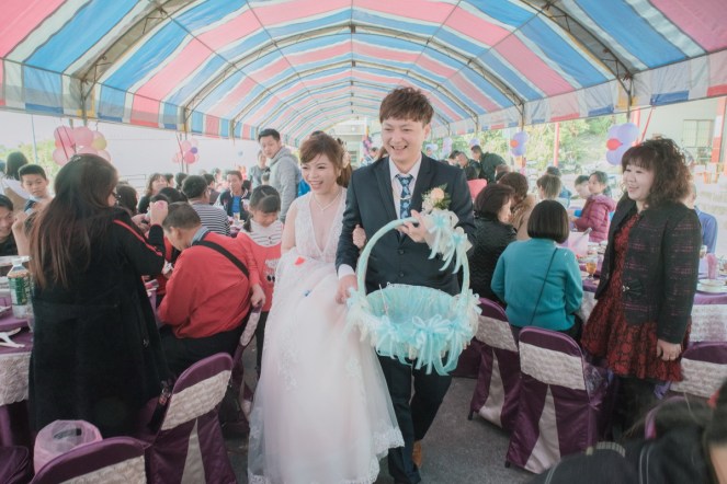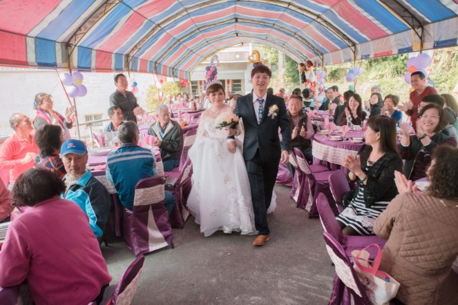 新郎建穎和新娘韋棋在台南六甲的自家流水席
