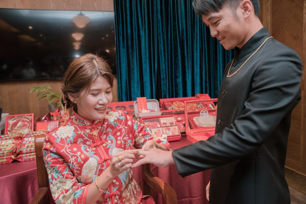 恭喜Alvis+婉嬋順利完成訂婚儀式,今天的行程超順,有專業主持人引導下,每個步驟都做得嘟嘟好,這場觀禮親友有夠多,讓整場氣氛high起來,你一句我一句,大家笑呵呵,這場新娘新郎也是郎才女貌配上最近很紅的秀禾服,在這樣有古早味的飯店,新娘父親看到都覺得我超面熟,一直被當成他兒子的同學,太常拍攝他們家族,今年初才幫他們家人拍攝抓周,5年前幫他大兒子拍婚禮,主婚人見過我很多次,對我很有印象。