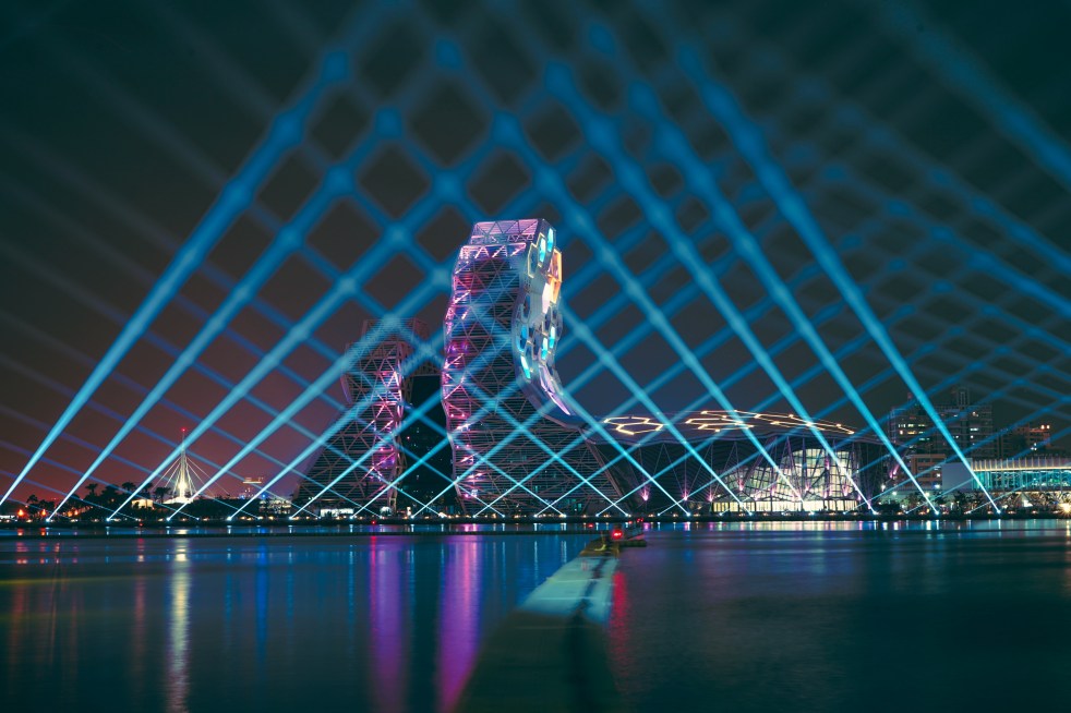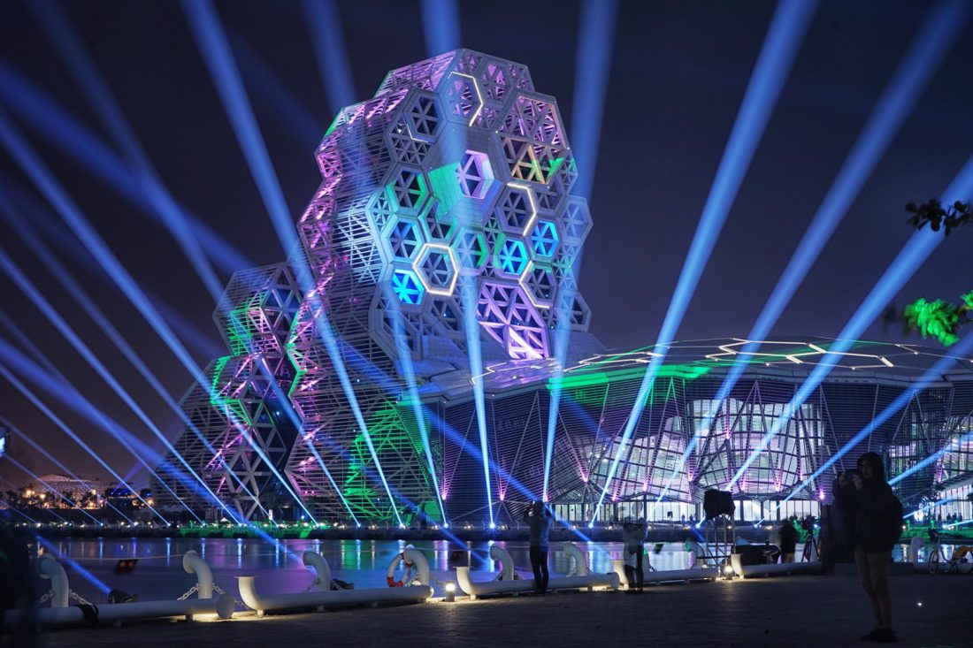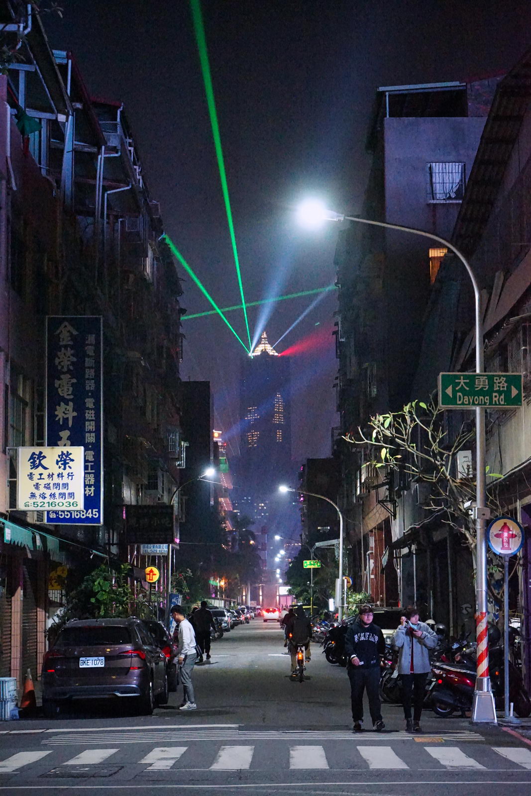 小呂本身住在附近,有時都會附近跑步,在聖誕節前幾天,這邊每晚打燈光秀,25號正式開始,每晚都像開演場會,雷射燈光秀每半個小時展演一次,每天18:30-22:30都會表演。