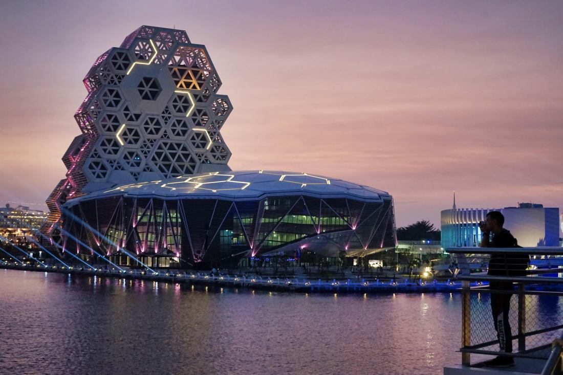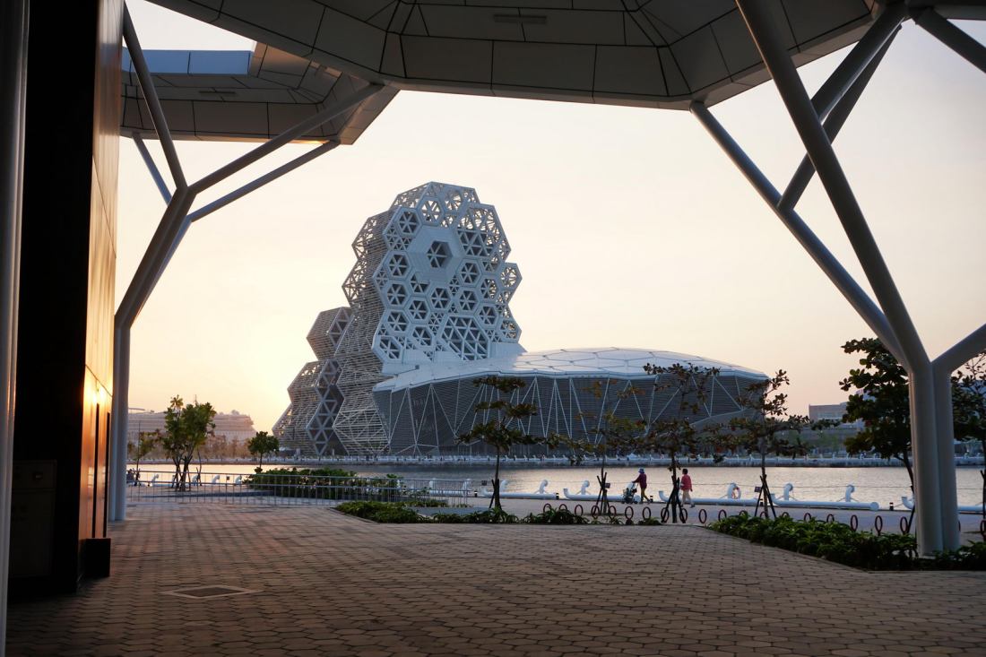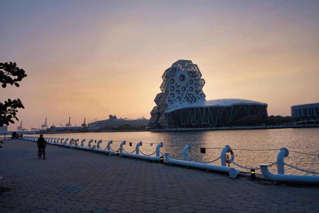 如果你想知道到哪邊是最好觀看地點,其實高雄流行音樂中心低塔和珊瑚礁群看過去都是不錯,但是我會推薦靠近無人飛機這邊,也是靠近領袖大樓這邊,跨年放煙火也是最佳觀看拍攝地點。