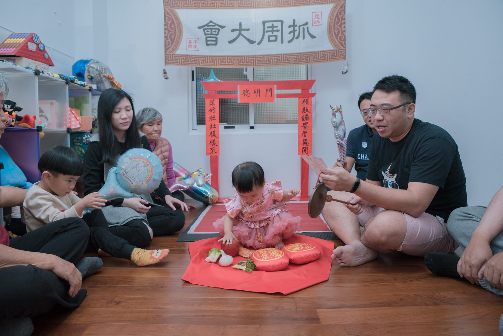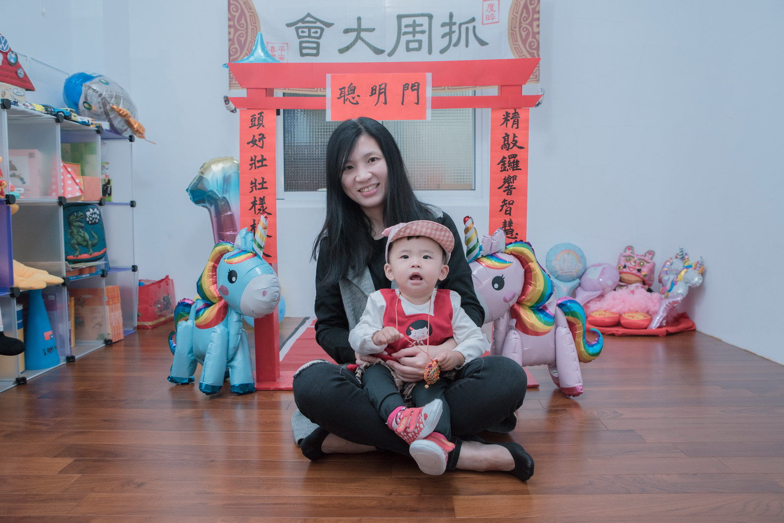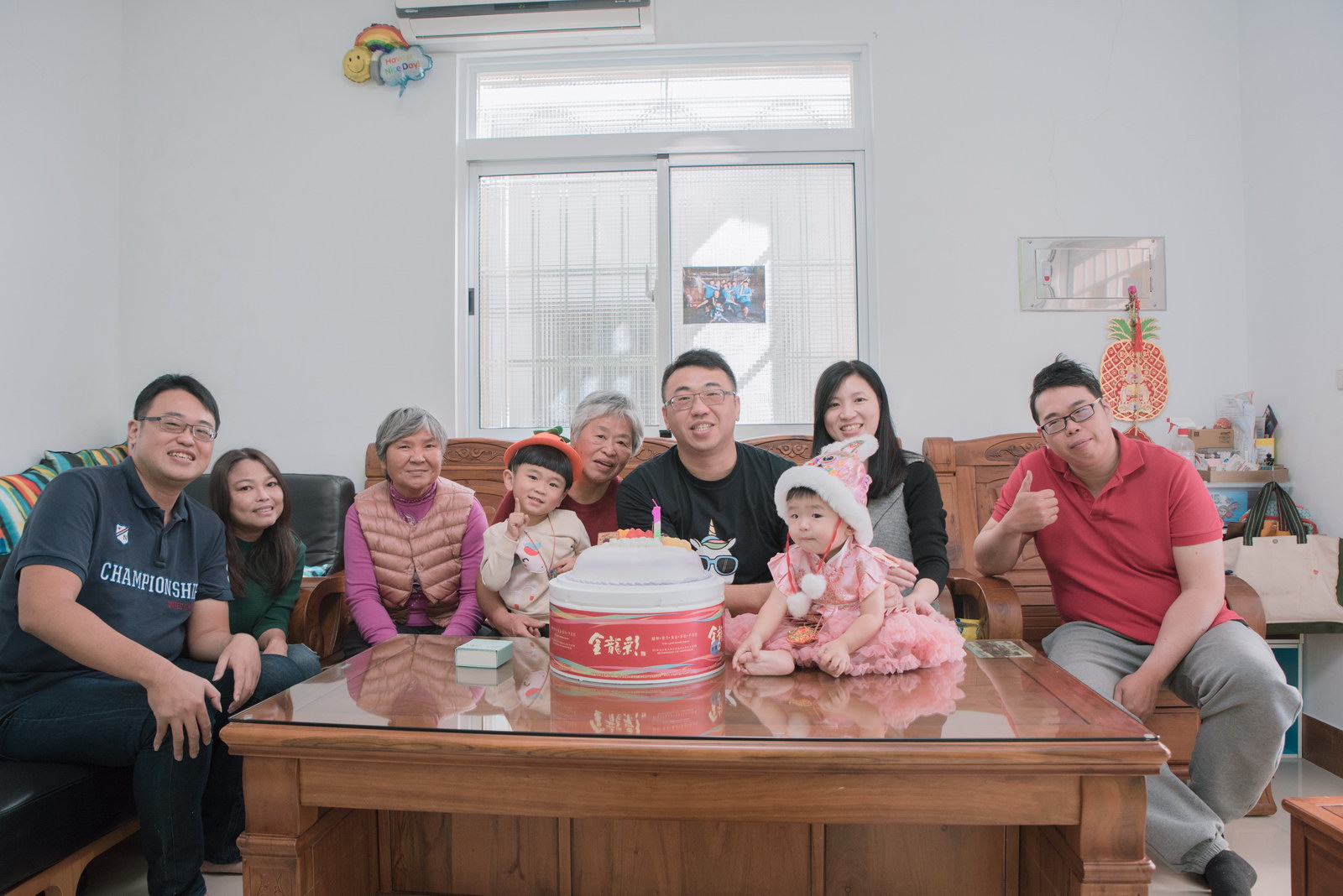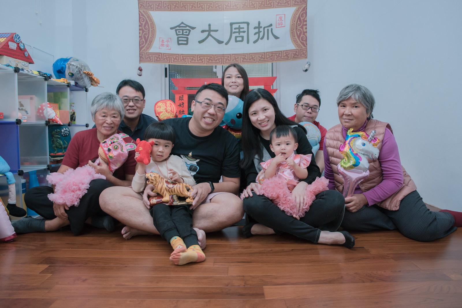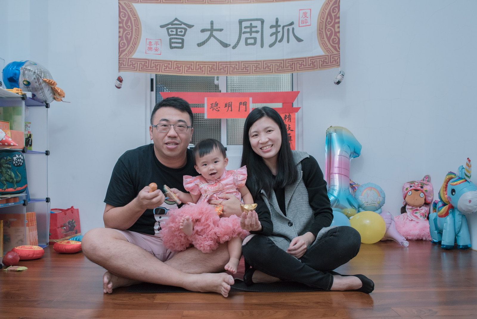 這次小朋友萱萱的爸媽,為了替妹妹慶生,設計了一個別出心裁的生日宴會,自已DIY做了一個聰明門,媽媽特別準備三套為了這次拍攝。原本是計劃在12月初就拍攝,因小孩一直微微發燒,超過一週才特別去醫院,醫生建議留院,才導致延後到一月初聽奶奶說爸媽為了這天拍攝前晚整理到很晚,都沒甚睡,早上拍攝完抓周,下午還特別花點時間出來外面拍攝一些與小孩互動、陪伴小朋友畫面,這次奶奶也是辛苦全程配伴,一次顧兩小。
