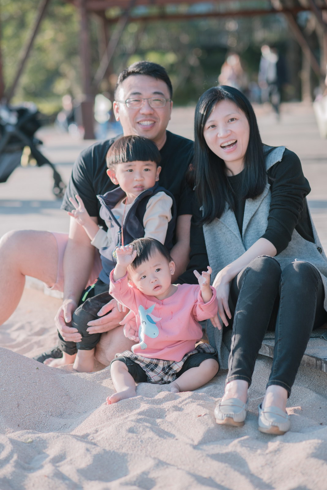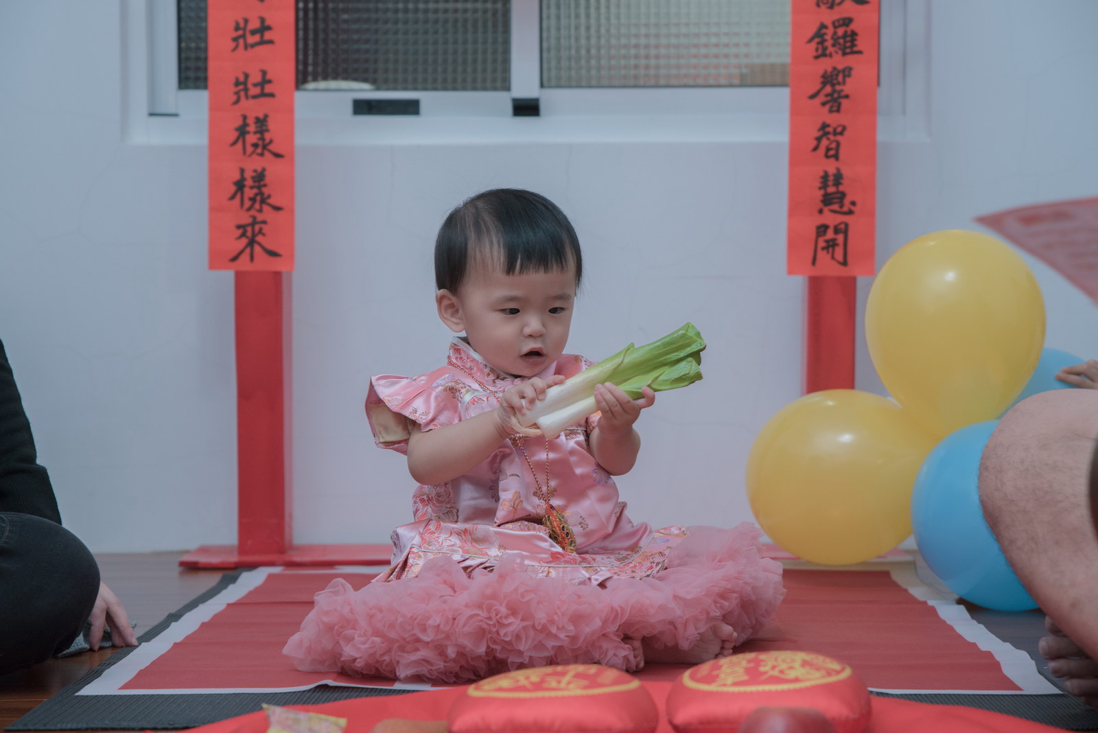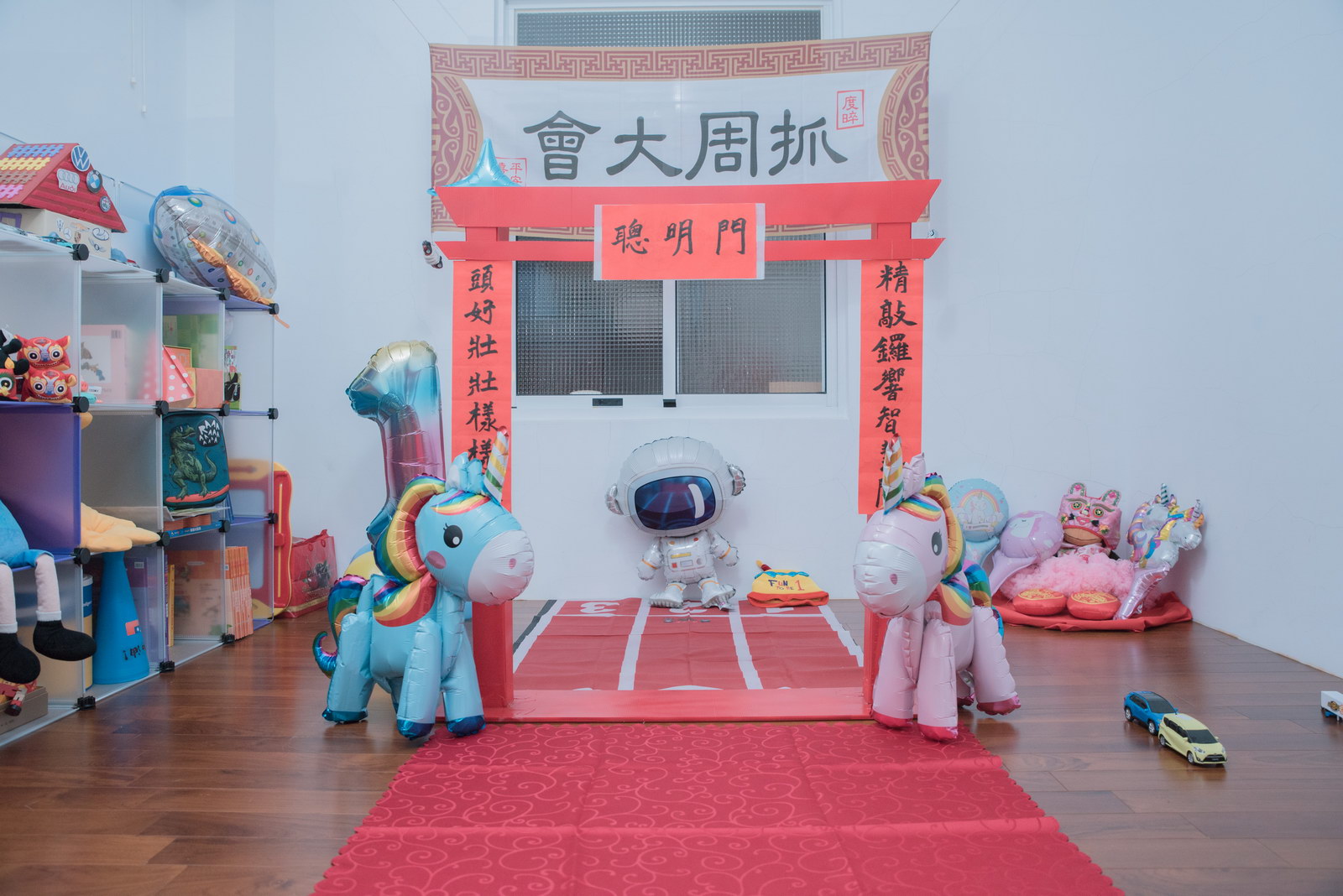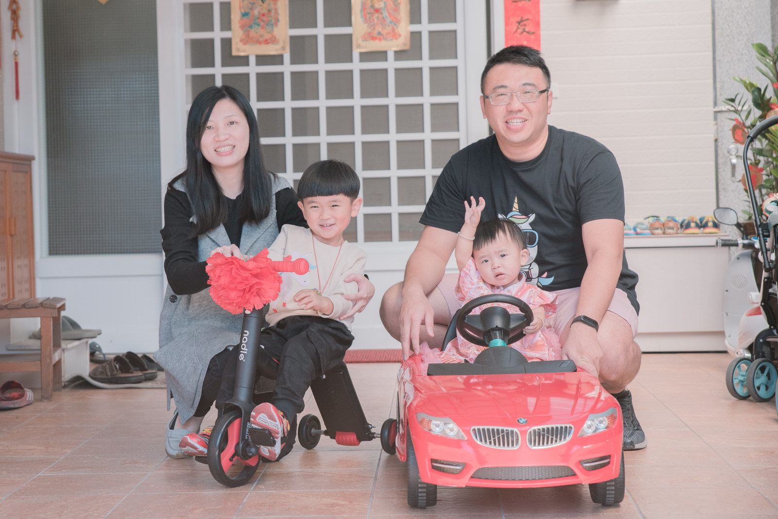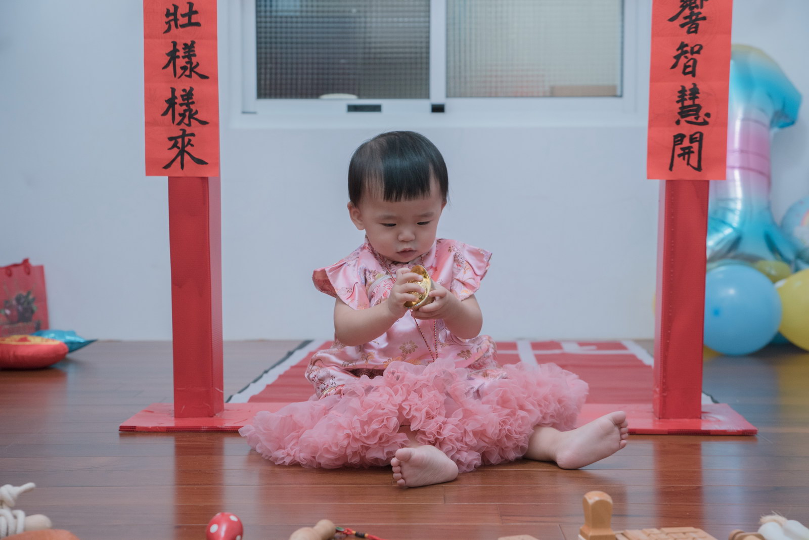 這次小朋友萱萱的爸媽,為了替妹妹慶生,設計了一個別出心裁的生日宴會,自已DIY做了一個聰明門,媽媽特別準備三套為了這次拍攝。原本是計劃在12月初就拍攝,因小孩一直微微發燒,超過一週才特別去醫院,醫生建議留院,才導致延後到一月初聽奶奶說爸媽為了這天拍攝前晚整理到很晚,都沒甚睡,早上拍攝完抓周,下午還特別花點時間出來外面拍攝一些與小孩互動、陪伴小朋友畫面,這次奶奶也是辛苦全程配伴,一次顧兩小。