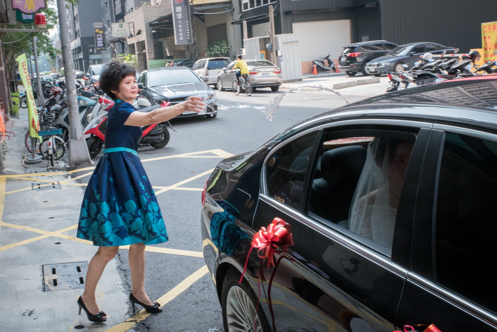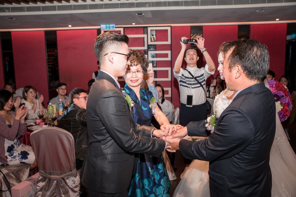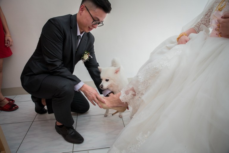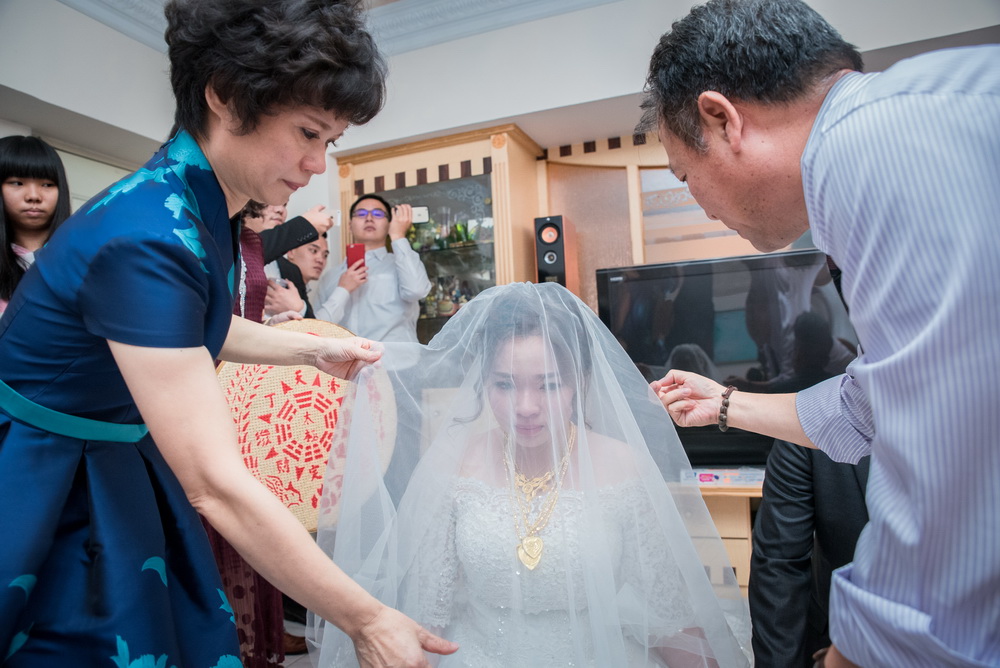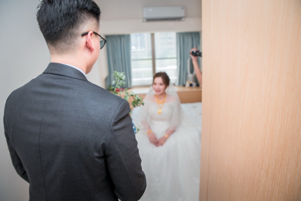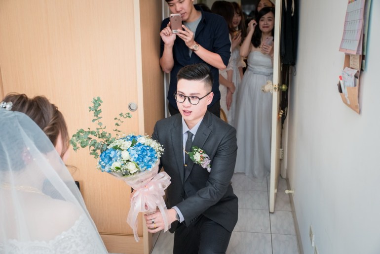 早上在進行這場訂婚儀式時,女方親友來了超多人,還好新娘家的客廳夠大,新郎本身是北部人,當天早上也在新娘家化妝,儀式快開始時,直接下樓與車隊會合,在外面繞一圈,進行當天訂婚流程,相當的流暢,進行交換戒子時,可看到新郎新娘他們2位都很調皮,故意灣手指不讓對方容易帶進去,看的出來他們2人平時互動相當好,如果有注意看照片,可看到新娘的媽媽在擦拭眼淚的畫面,想到自已寶貝女兒嫁出去,下午的迎娶場,就更感人。