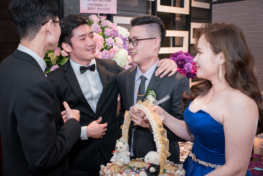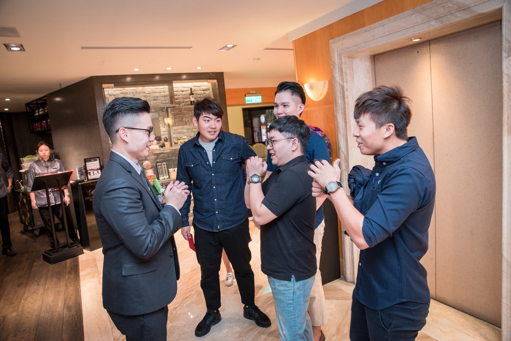這次新郎的伴郎的真的好戰友,伴娘準備超多趣味遊戲給他們玩,好還新郎選對朋友,這次伴郎夠坦,配合度很高,在準備晚宴前,不小心看到其中一位伴郎坐在外面椅子休息小睡,婚禮進行一整天早上訂婚下午迎娶,眾人都累翻了。也辛苦的2位伴郎的陪伴。
