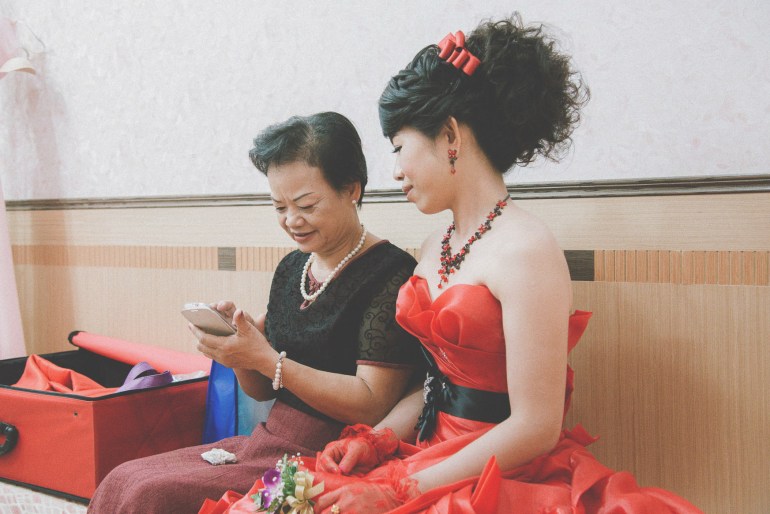 這個是多年前拍攝的喜宴,當時在高雄晶頂101海鮮餐廳會場拍攝,這場是單儀式,是新娘的哥哥來跟我接洽,因為新人它們都住在北部,這場算是女方的補請場,當大夥人還在休息時,我看到新娘在與一位婦人坐一起在交談,原來是未來的婆婆,新娘正在教學怎樣使用Facebook,婆婆第一次使用Facebook把剛剛拍照片貼上去發現相當新奇,當喜宴準備開前,我不時注意到她一直很開心的看的手機,我當時也很好奇,想說怎那開心看的手機,當我走近看到原來是剛剛在休息室與新娘拍合照,在上傳到Facebook,親友們給她按讚,讓她看到很開心笑起來。在別人眼中也許只是一個小小動作,但是這個點讚動作卻可帶給她開心一天。