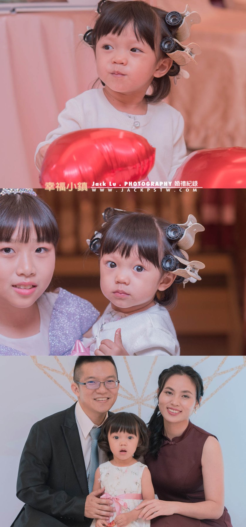 包租婆造型: 這次小花童媽媽很講究,還特別幫自已女兒捲上燙捲夾,準備等下要跟新娘一起走紅地毯,