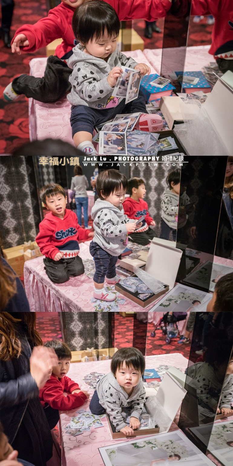 在新娘休息室,調皮的小朋友(高雄瑞峰喜宴廣場),想抓婚攝的鏡頭,還好攝影師夠高!