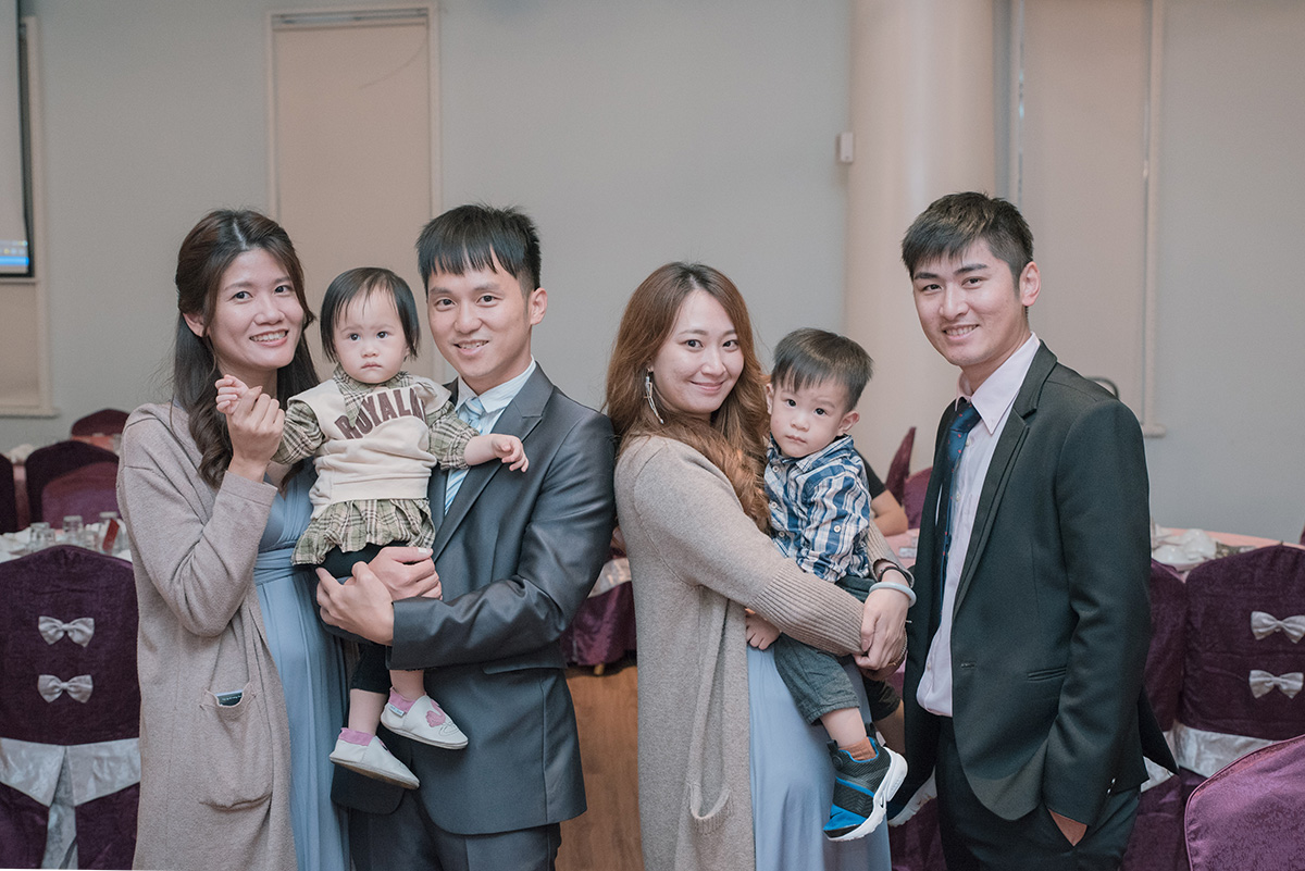 在拍攝這場婚宴時,小呂特別注意到新郎超喜歡跟小朋友互動,只要小孩在手上新郎眼睛就亮起來,新郎應該很喜歡小孩,最後拍攝全家福時,當新郎新娘把小朋友抱帶大腿上,這個畫面讓小呂感覺他們超搭配的,有預感將來他們有機會生2個。