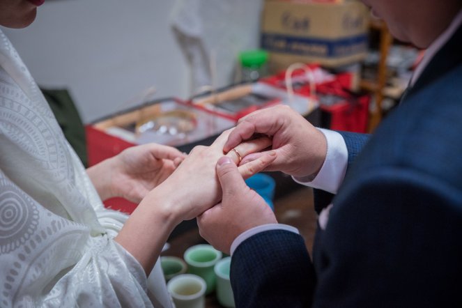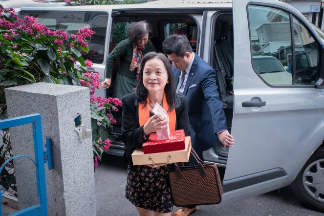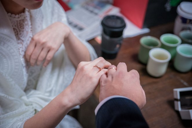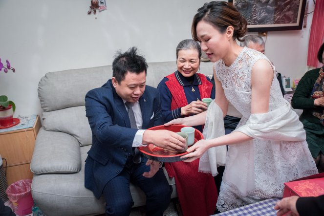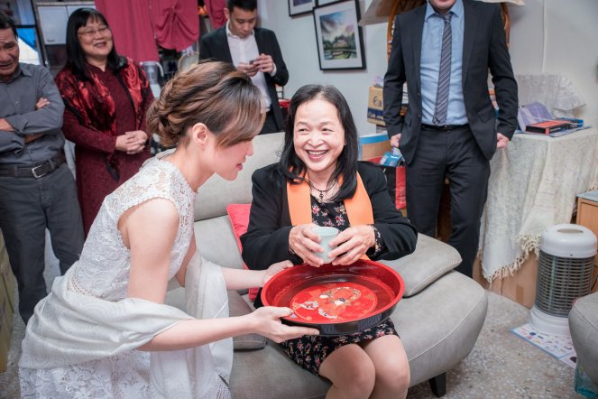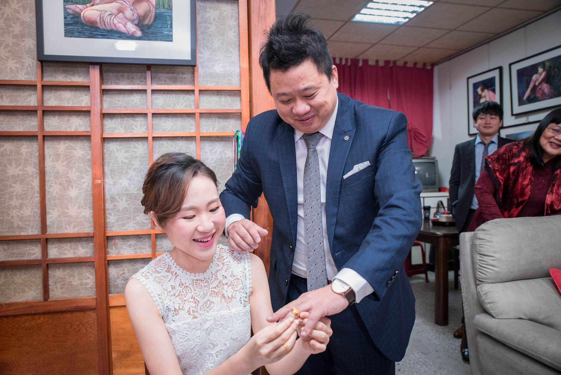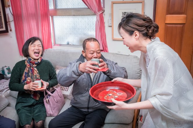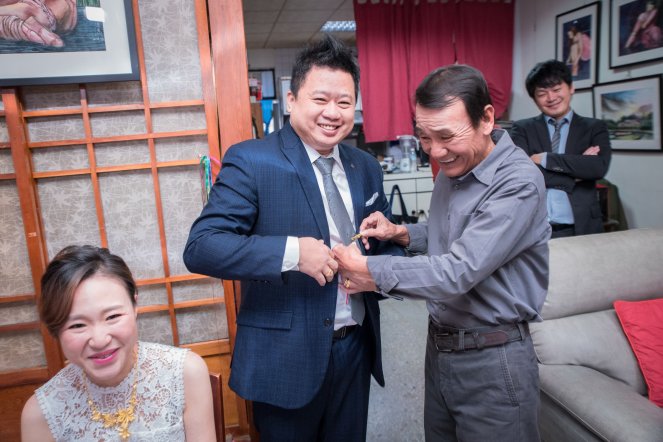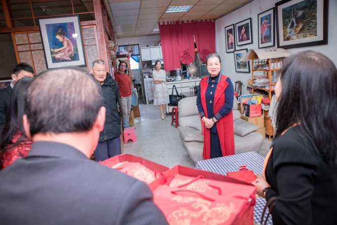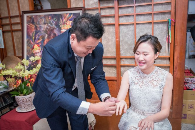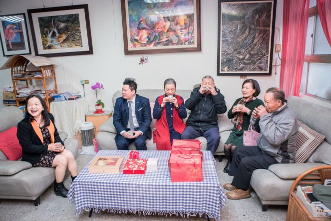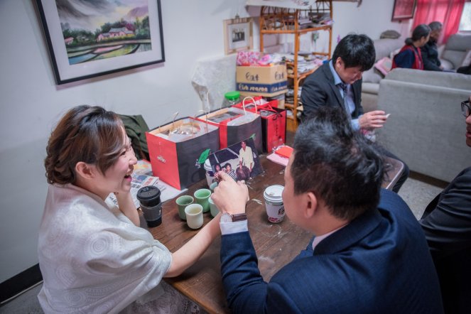 這場訂婚文定算是比較簡單儀式,新娘自已準備的一套全白的小洋裝當作這次禮服,新郎家族是從北部專程開車下台東,男方一到,就提了2大箱的喜餅和聘禮下來,現場看到新娘與男方親友互動相當和樂,新娘父親看的笑瞇瞇。