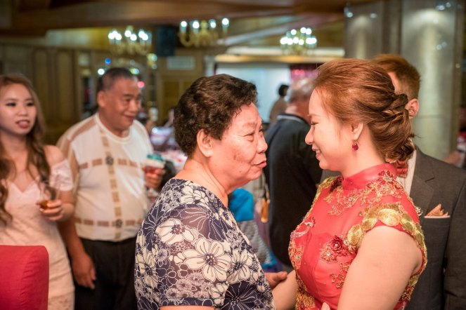 在喜宴進行到最終時,進行送客時,賓客陸續走出來,輪到奶奶給新娘一個大大擁抱,奶奶叮嚀孫女,說好久沒見她,住在那遠,也很不容易見面,希望她在那邊要好好照顧自已,最後把奶奶也臨時的金戒子套上孫女手上,這金戒看得出來是奶奶上一輩傳下來,現在交託到孫女,從照片中奶奶的眼神也看得出相當不捨。 看到這邊想到現在疫情出國也不易,很多居住在國外的旅人應該很多人都不敢隨意出國。
