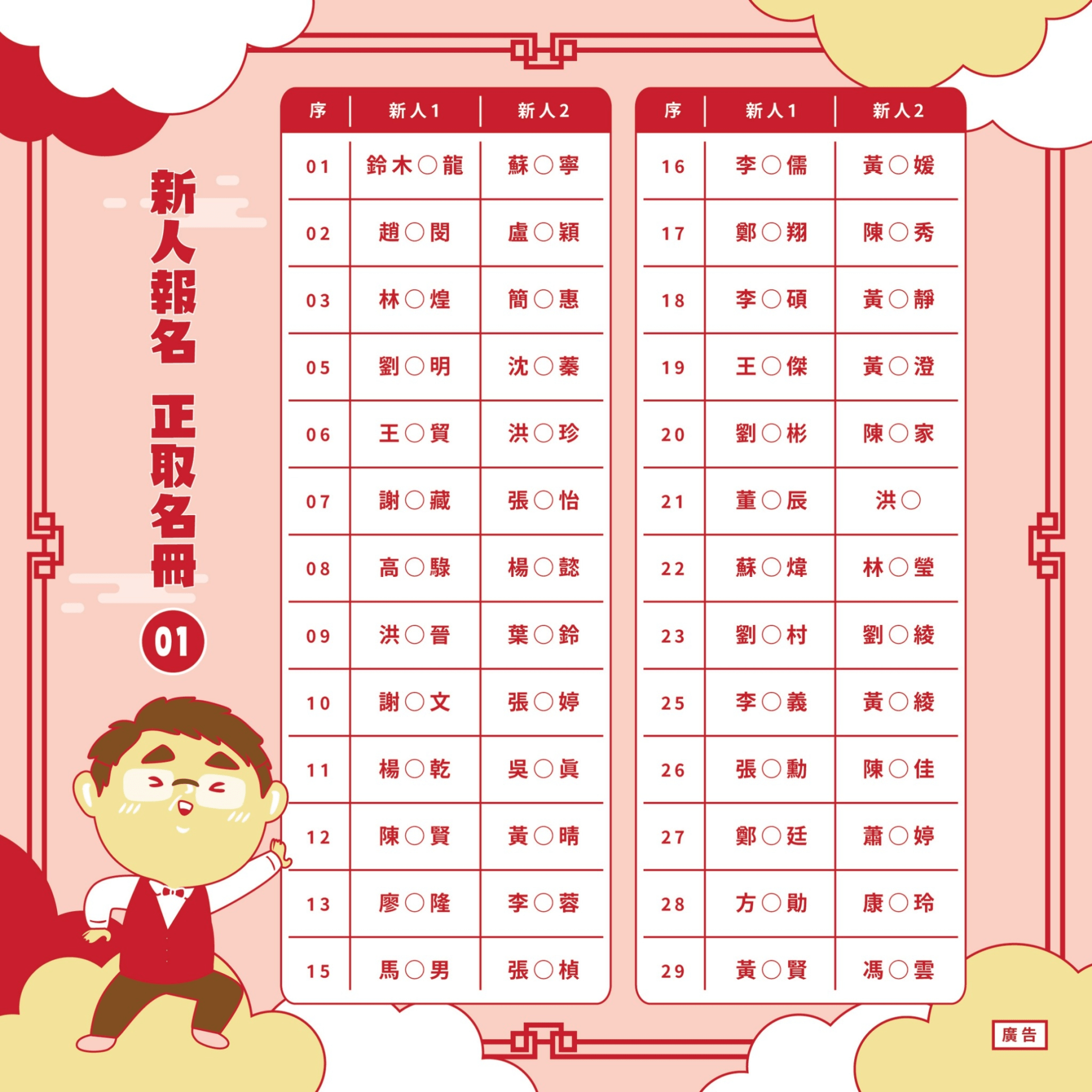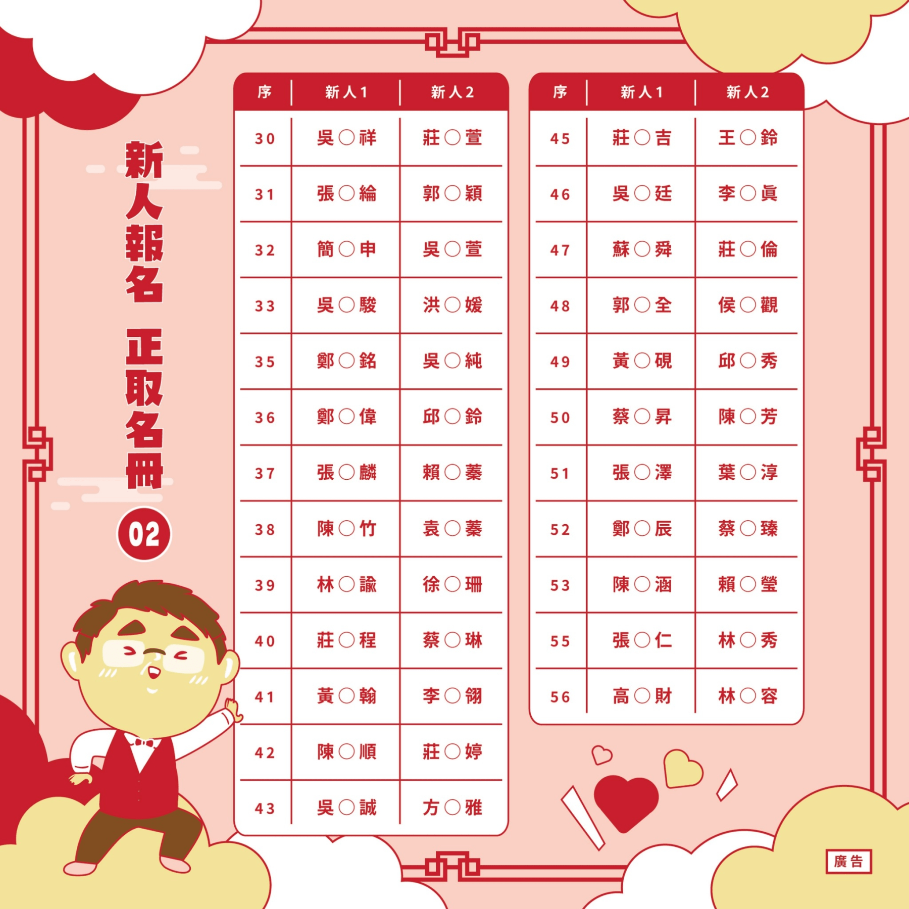 2022/8/22更新: 臺南市111年聯合婚禮報名結果公布 正取名單