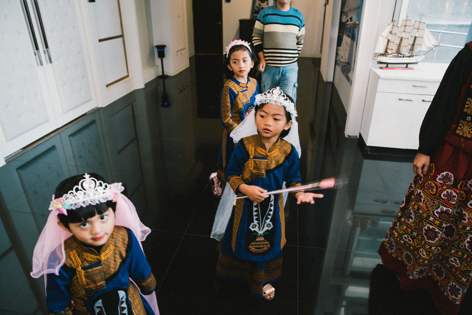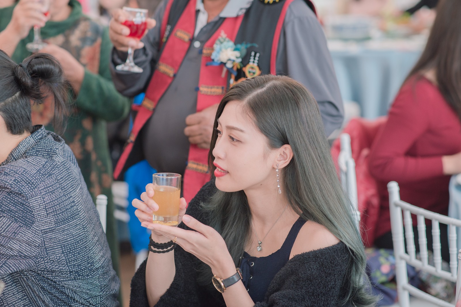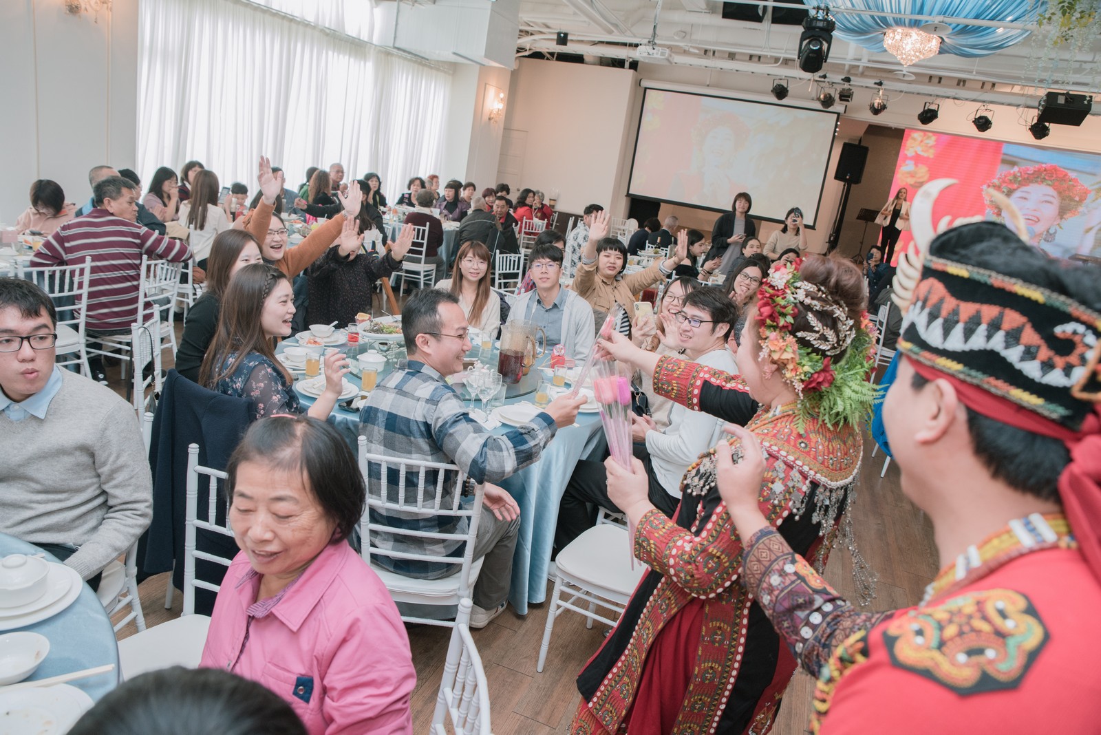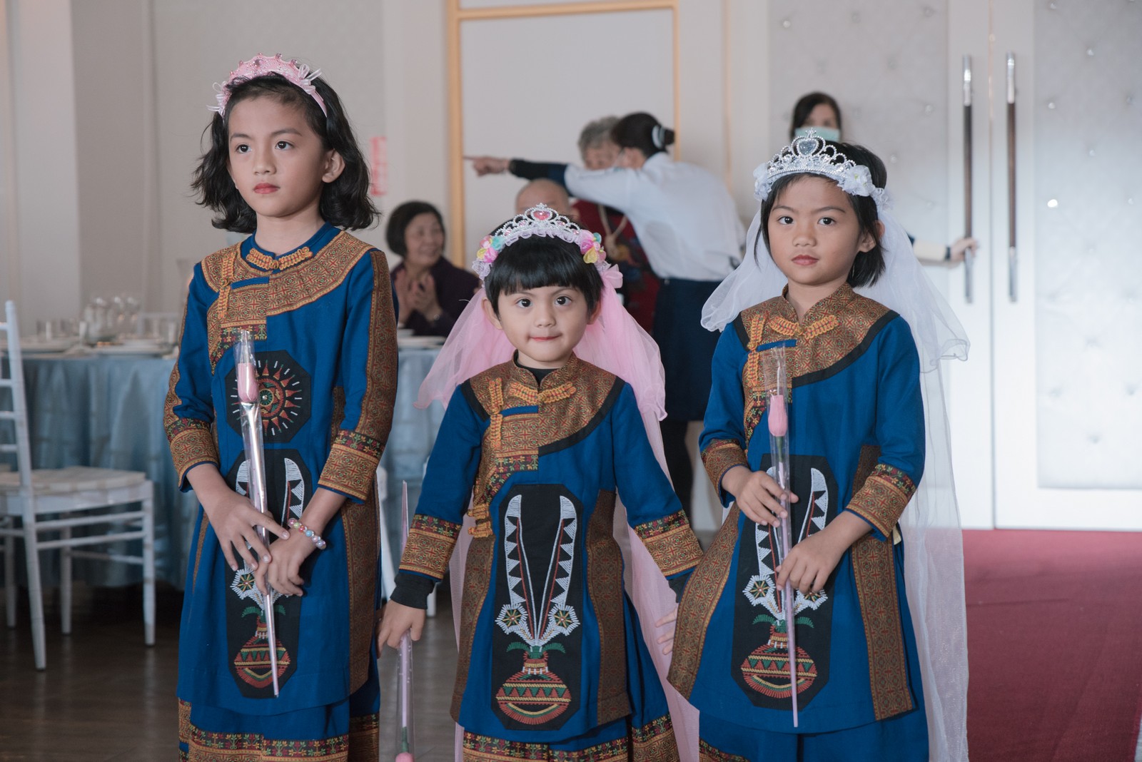 當時跟這場新娘溝通時,希望都可多拍攝在家人親友的部分,這場會以媽媽家人為重點的喜宴,雖然這樣但是我在拍攝上還是會留部分時間給新人拍攝部分,新郎倌他們家是原住民家族,當天小花童特別準備它們原住民當地衣服,這次主婚人也是相當好客,每位認識的朋友都要來張合照,每張都笑得很開心,難得大家都聚在一起吃飯,新娘媽媽是位很好客的人。