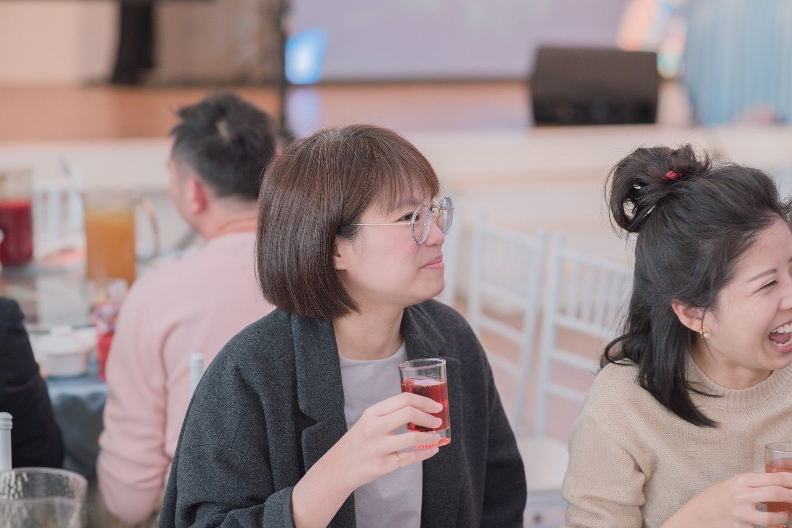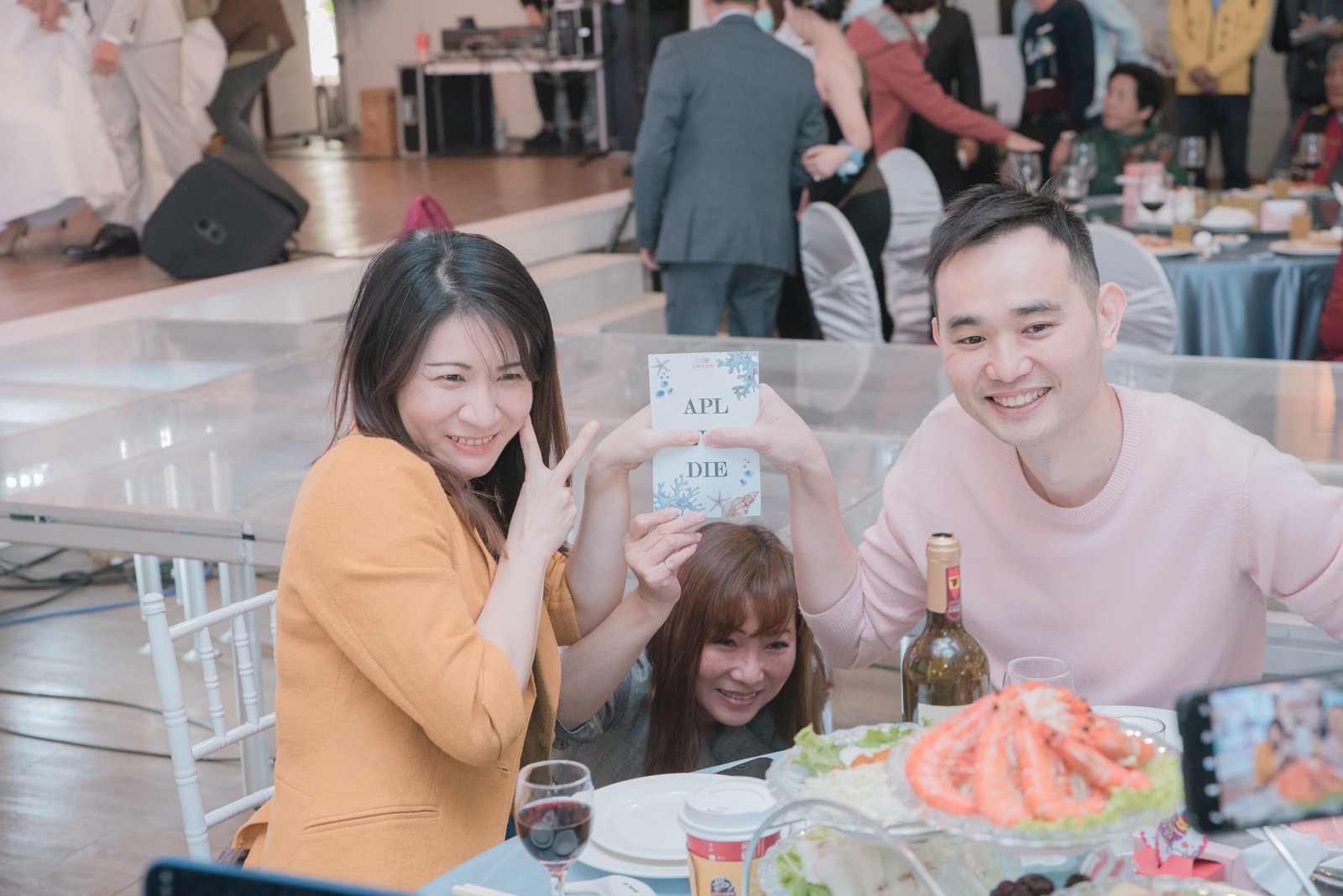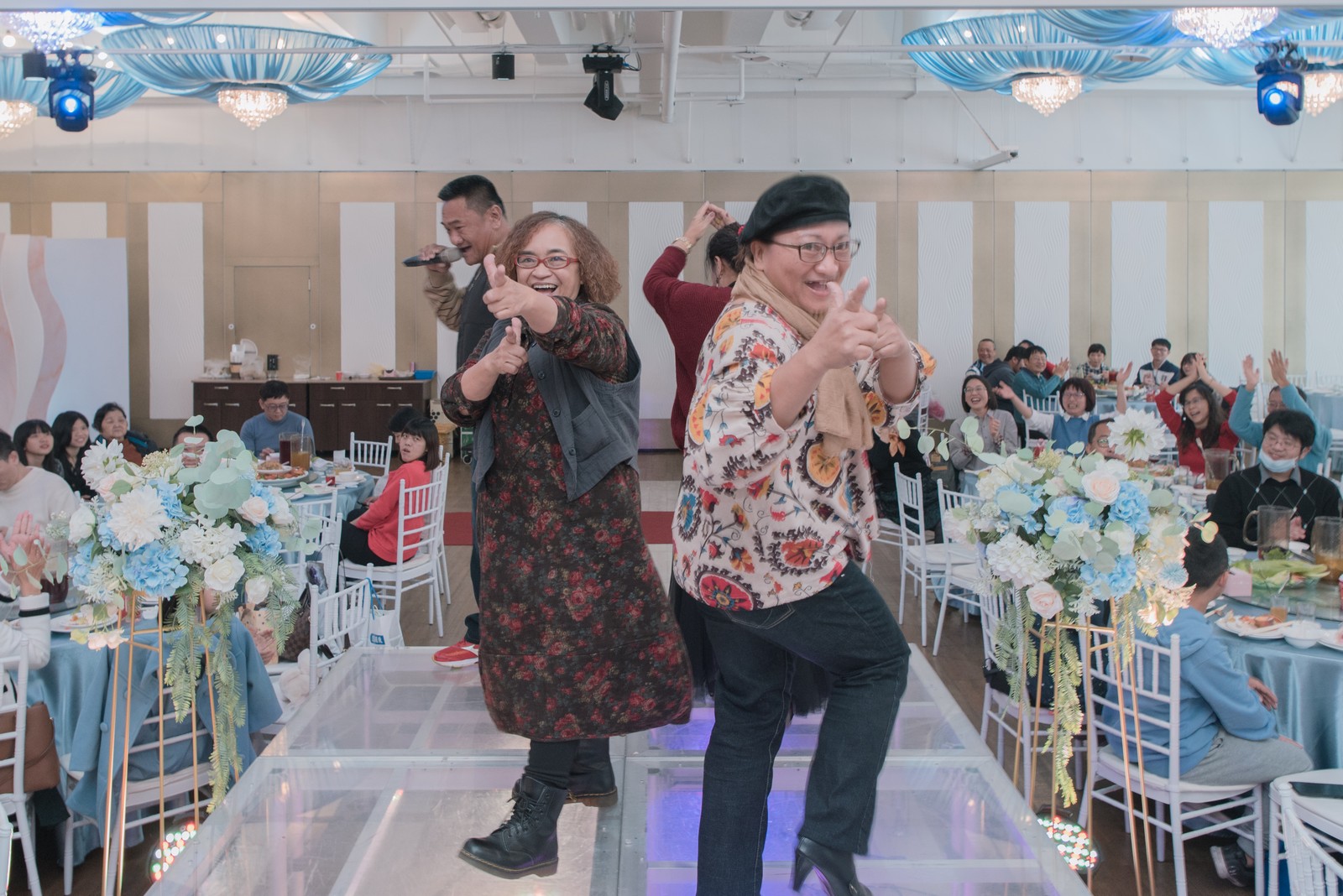 男方親友團好high,原本在台上還閉俗,被主持人半推半請上台,音樂一開,就像是打開關般,聽到節奏就不自主動起來,被主持厲害帶唱,氣氛都帶起來。